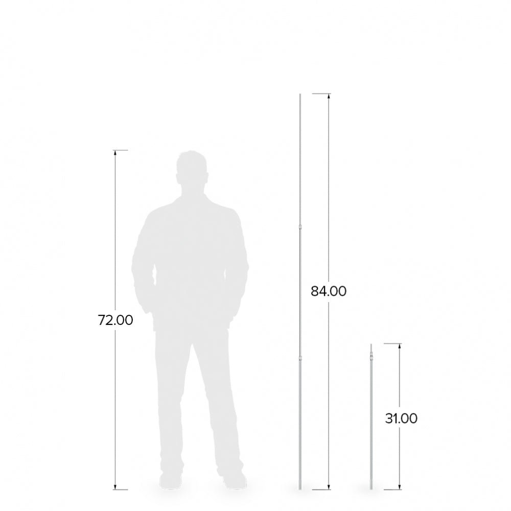 These telescopic aluminum tubes are 84" long, providing a 7ft telescopic aluminum tube assembly. These can be purchased in qty 1.
